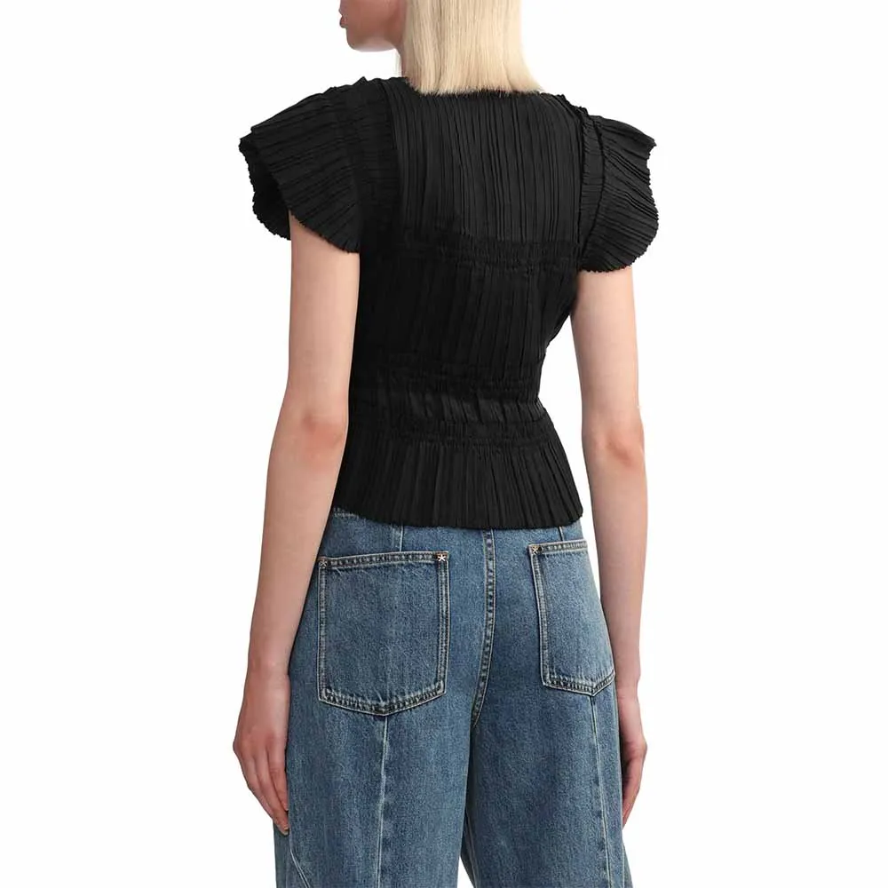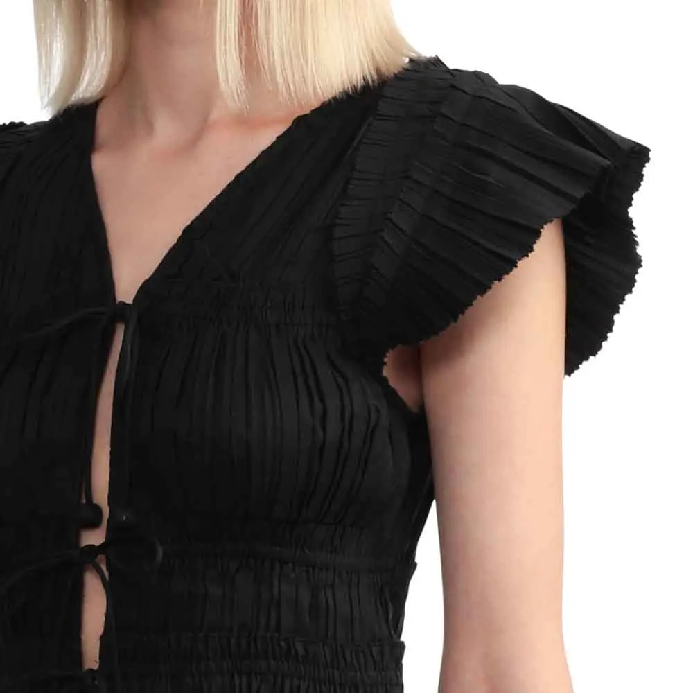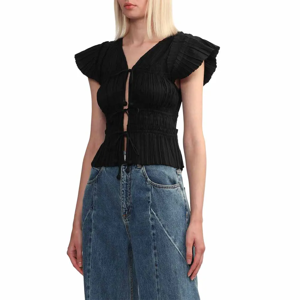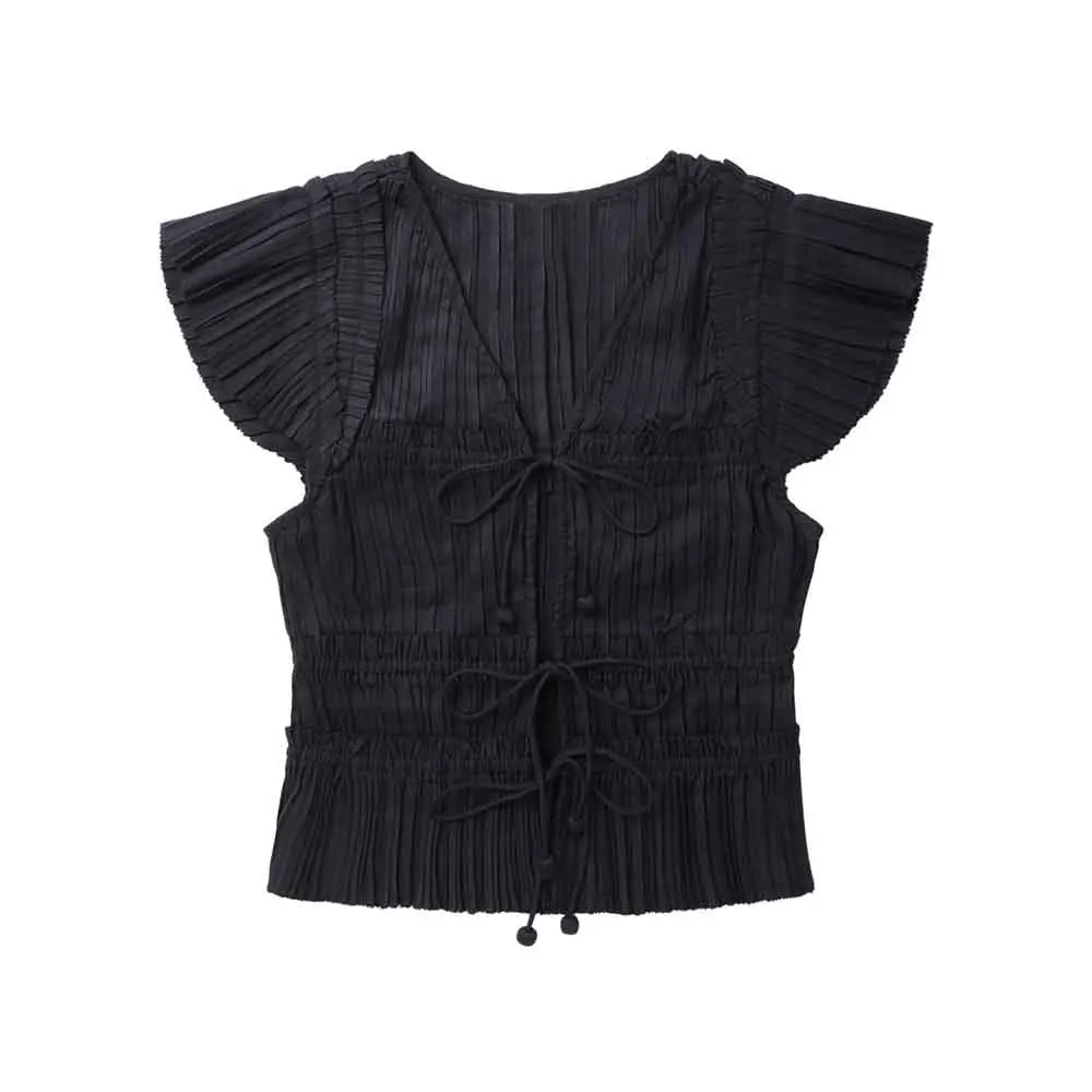 Clothing Manufacturers Custom Spring Summer Autumn Pleated Lace up Flying Sleeve Blouse Vest Top